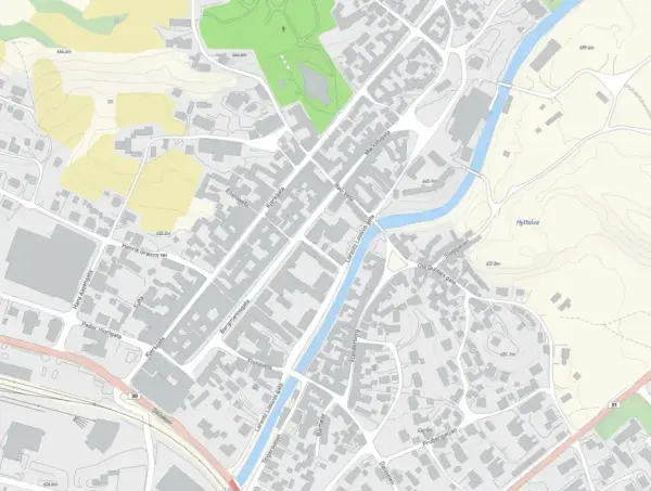 Kart over bergstaden fra 1711. Vi kjenner igjen hovedstrukturen fra dagens bybilde.