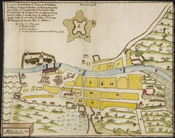• Kart over bergstaden fra 1711.
